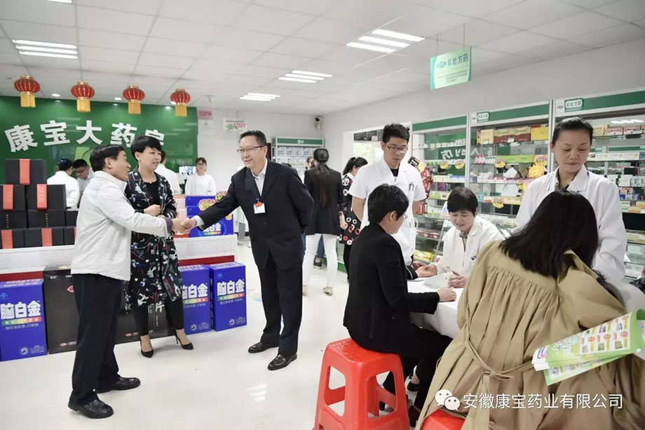 為保證店慶活動順利進行,醫院集團董事長江鴻方、康寶藥業董事長朱興林冒著風雨,親臨現場布置工作。兄弟單位領導也早早的來到藥店,忙前忙后,給予大力支持。