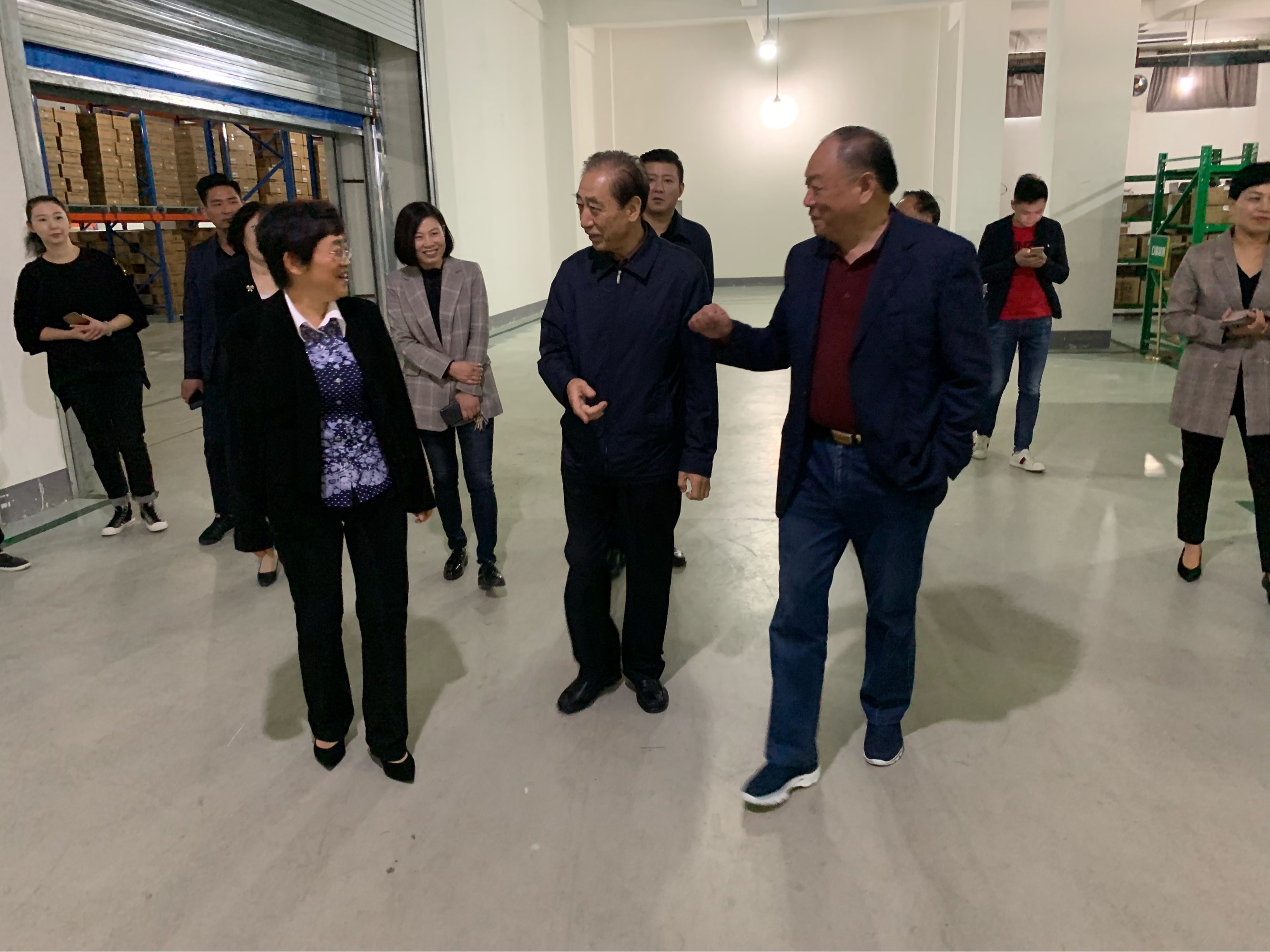 老領導楊愛光一行在江鴻方董事長陪同下,饒有興致地參觀了康寶藥業公司的庫房。