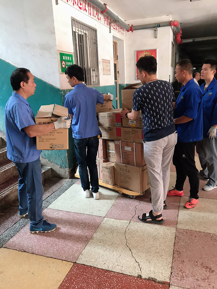 夏日來臨,氣溫升高,道路維修,行車不便。與此同時,藥材科的樓還沒有電梯,為了保證藥品的及時供給,大家不懼高溫、不畏辛勞,用推車把藥品送到樓下,再一件件扛到三樓。