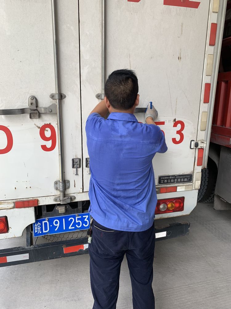 卸完貨把車門關好,師傅的衣衫已經全部濕透。